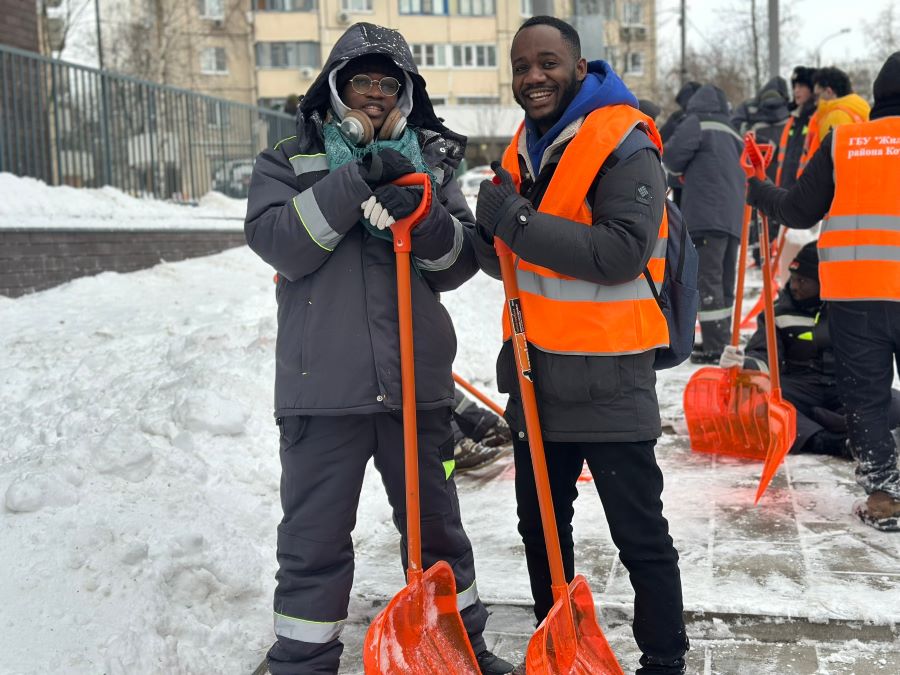 Но работа не ограничивается стенами университета. Зимой, во время рекордного за 50 лет снегопада (циклон «Фрэнсис»), 32 студента из 15 стран за 4 часа расчистили от снега детскую площадку, парковку и пешеходные зоны на юго-западе Москвы.